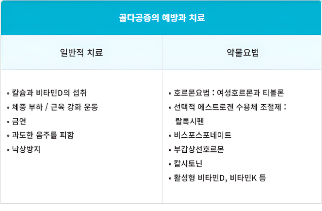 - 적절한 유산소 운동과 스트레칭 등을 통해 골량을 유지