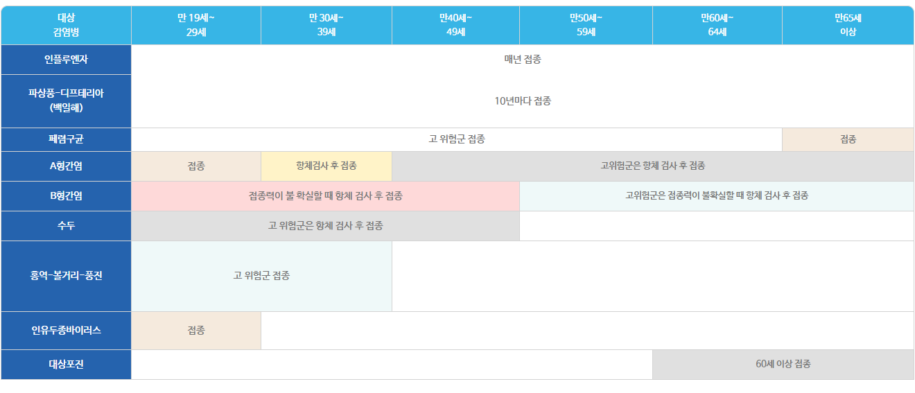 ● 성인예방접종표